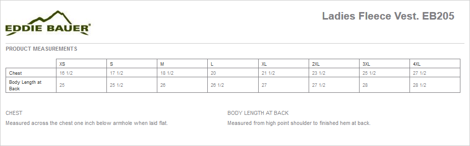 Ward off early morning chills by insulating your core with this soft, cozy vest. Princess seams, dyed-to-match reverse coil zippers, front zippered pockets with tricot lining, binding at armholes and an open hem. Embroidered Eddie Bauer contrast logo on right hem. Made of 12-ounce, 100% polyester fleece. Produced using Low Impact Technology (L.I.T.™) which uses less dyestuffs, thermal energy and water for enhanced softness, performance and after-care quality.